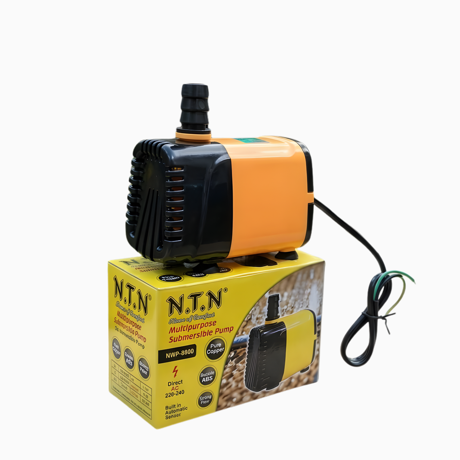 The NTN NAC 1028 Multipurpose Submersible Pump is a reliable and energy-efficient solution for smooth water circulation. Designed with a 100% pure copper motor and durable ABS body, it ensures long-lasting performance with low noise. Operating on AC 220–240V, this pump delivers strong water flow and features a built-in automatic sensor, making it perfect for air coolers, aquariums, and water decorative setups.